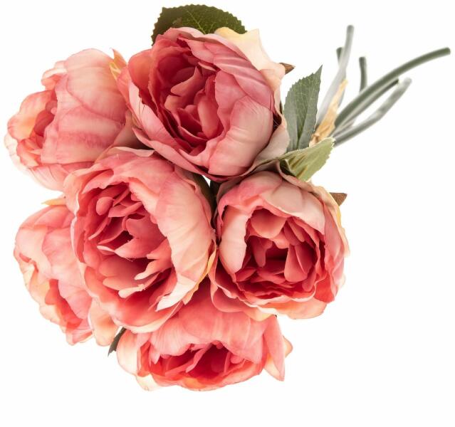 A természetes színekben pompázó, üdítő megjelenésű, valósághű, virágzó bazsarózsa műcsokor a természet és a romantika jegyeit varázsolja minden térbe. Alkalmas vázába helyezve asztalra, ablakpárkányra vagy polcra, vagy nagy tartósságának köszönhetően kültéri használatra is alkalmas. A csokor a megvásárlást követően gyönyörű látványt nyújt, vagy további virágokkal kiegészítve gazdag csokrot hozhat létre többféle virággal, vagy éppen ellenkezőleg, a bazsarózsa virágokat külön-külön is felhasználhatja más dekorációkhoz.