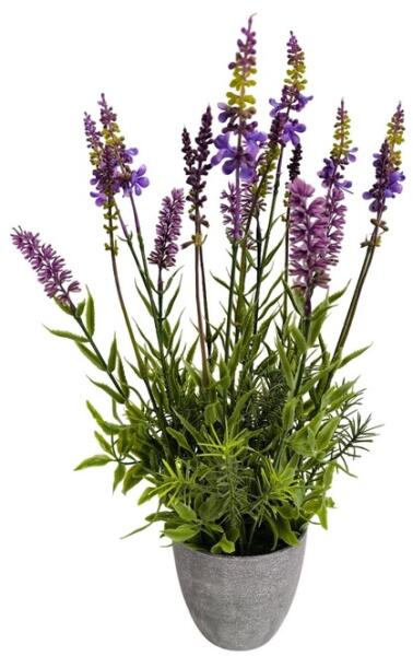 A valósághű feldolgozásnak és a gazdag lila virágoknak köszönhetően úgy néz ki, mintha élőlény lenne, de nem igényel gondozást. A stílusos ültetőedény kiegészíti az összképet, és bármilyen helyiségbe illik - a nappalitól az irodáig. Ideális ajándéknak, íróasztali kiegészítőnek vagy ablakpárkánynak. Élvezze a levendulamező nyugtató hangulatát, amikor csak akarja - öntözés és kihullás nélkül.