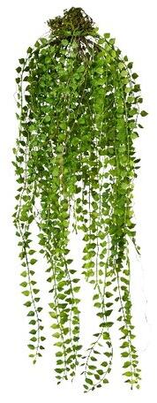 A Columnea függő művirág (48 cm, zöld) akasztóval (27 cm) egy dekoratív növény, amely a valódi Columnea megjelenését utánozza. Ez a modell beltéri függesztésre alkalmas, és természetes megjelenést kölcsönöz a helyiségnek, anélkül, hogy gondozást igényelne. Alkalmas természetes fény hiányában vagy azok számára, akik nem tudnak időt szánni élő növényekre. Ideális mennyezet, ablakpárkányok vagy más függesztett felületek díszítésére. A függesztőgyűrűnek köszönhetően a növény könnyen elhelyezhető a kívánt magasságban, így biztosítva a hely hatékony kihasználását.
