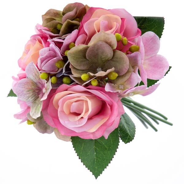 4-Home Rózsa hortenziával művirág csokor, sötétrózsaszín
