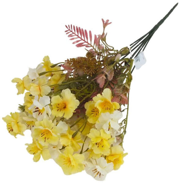 Az 7 ágú virágos csokor gyönyörű, finom, elegáns megjelenésű selyemvirág, ami bármilyen dekorációban megállja a helyét. A szárak formázhatók a bennük található fém drótnak köszönhetően, így könnyedén igazíthatod a virágokat az elképzeléseidhez. Méret: 38cm Felhasználási lehetőségek:
