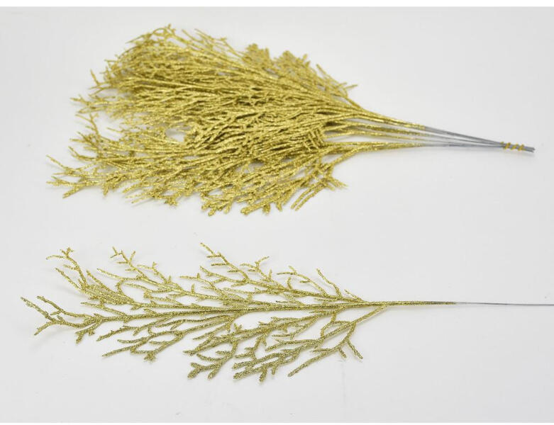 Nagy arany csillámos ágasbog műnövény dekor: otthoni vagy kirakati díszítéshez. Önmagában vagy kiegészítő díszítéshez, készítményekhez egyaránt használható.