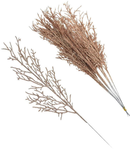 Nagy barack-arany csillámos ágasbog műnövény dekor: otthoni vagy kirakati díszítéshez. Önmagában vagy kiegészítő díszítéshez, készítményekhez egyaránt használható.