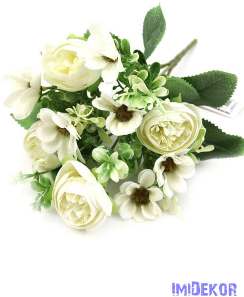 Boglárka + kis virágos selyem csokor 30cm - Fehér