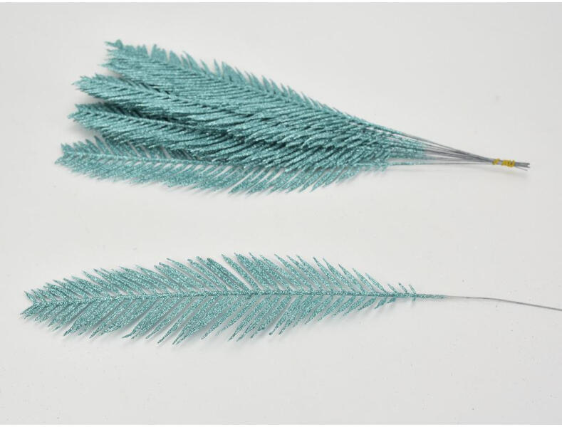 Türkiz csillámos toll formájú műnövény otthoni vagy kirakati díszítéshez. Önmagában vagy kiegészítő díszítéshez is.