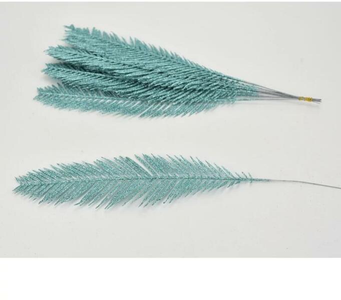 Türkiz csillámos toll formájú műnövény otthoni vagy kirakati díszítéshez. Önmagában vagy kiegészítő díszítéshez is. Méret: hossz: 40cm, szél: 8cm 1 db-ra vonatkozik az ár!