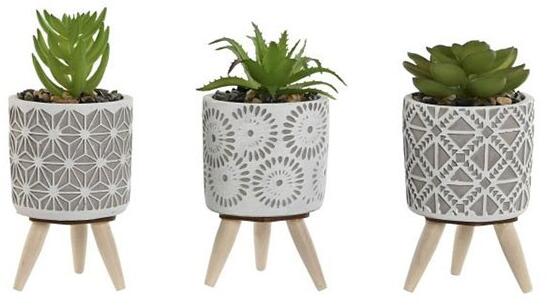 Exkluzív kivitelezésű, élethű gyönyörű zöld növények, szürke színű cementből készült három lábú kaspóban. A cementből készült kaspóban lévő élethű műnövény mérete: 6,5x6,5x11cm. Háromféle növénnyel kapható. Az ár egy darabra vonatkozik, a megjegyzésbe írd, melyiket választod.
