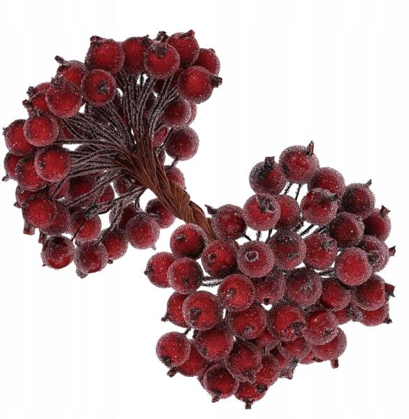 EdiBazzar Mű Jegenyebogyó Díszág Karácsonyi Bordó Fagyos 100 db Dekorációhoz (Sztuczna Ozdobna Jarzębina Świąteczna Stroik)
