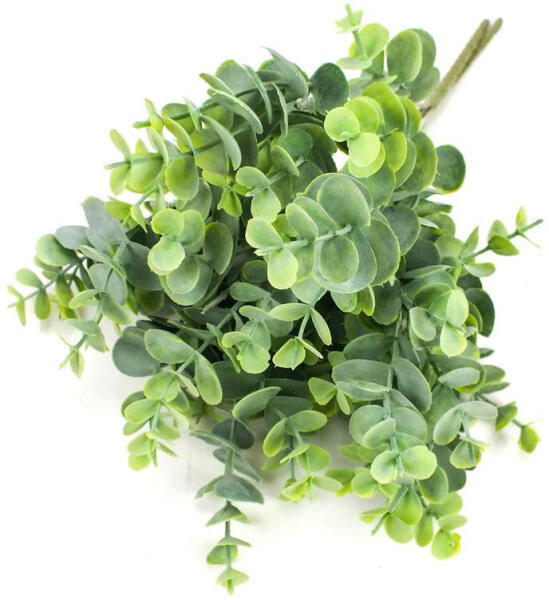 Élethű hamvas eukaliptusz csokor. Kisebb-nagyobb dekorációk kiegészítéséhez ajánljuk, de önmagában is természetes hatású dekoráció.