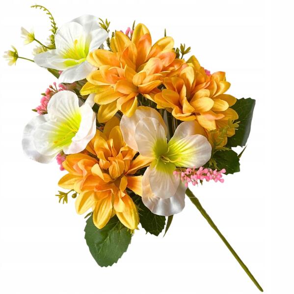 Hurt77 Mesterséges Dália Csokor 43 cm Virág Kompozíció Fehér Sárga (WMD-220A bukiet)
