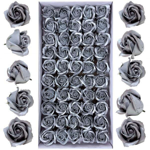 Inspiruj Ezüst színű rózsa szappan szett 50 db Szappan rózsa fejek flowerboxokhoz (HD00737)