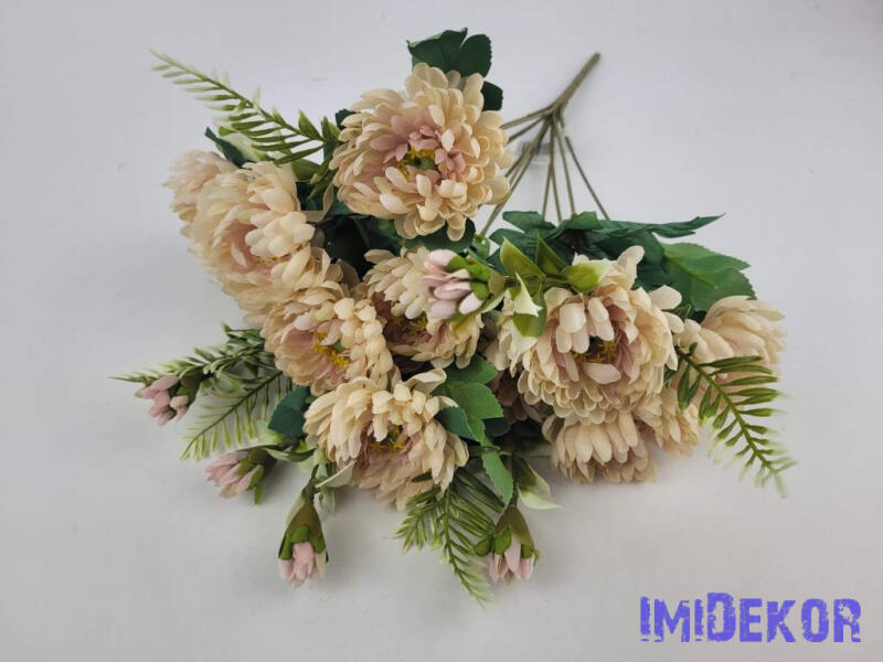 Krizantém 11 ágú selyem csokor 44cm - Púder