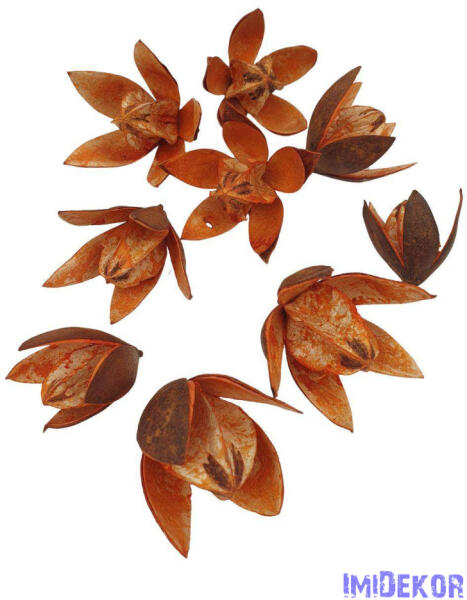 Egy csomag tartalma kb 9db/csomag, a képen látható mennyiség. Természetes dekoráció lévén a darabok változó méretűek, a csomagban kisebbek és nagyobbak is előfordulnak. A szárított termés festése nem mindig egyenletes.