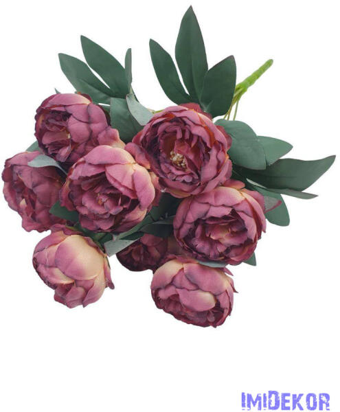 Peónia 10 fejes selyemvirág csokor 43cm - Cirmos Mályva