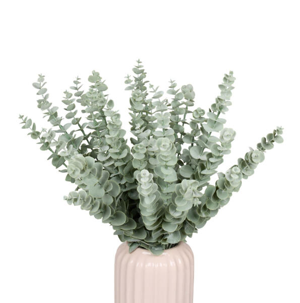 Ezzel a 36 eukaliptusz ágból álló készlettel friss és természetes hangulatot vihet otthonába. A valósághű megjelenésű műnövények rugalmas, műanyagba csomagolt fémszárakkal nyűgöznek le, amelyek könnyedén formázhatók. Akár a nappaliban, akár a hálószobában, akár a konyhában – a műnövény eukaliptusz tökéletes dekorációhoz. A tartós, könnyen kezelhető, nem fakulnak ki, és nem igényelnek sem vizet, sem napfényt.