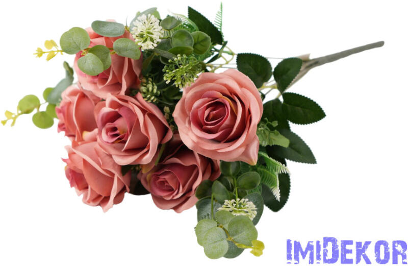 Rózsa 10 ágú selyemvirág csokor 47cm - Őszi Mályvás