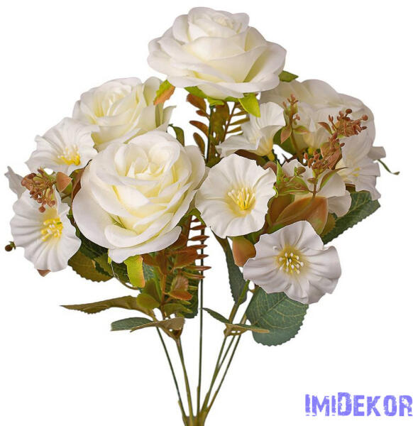Rózsa 7 ágú selyemvirág csokor 43cm - Fehér