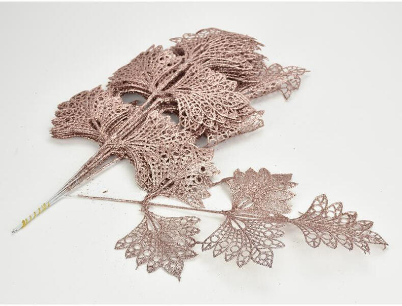 Rózsa-arany csillámos ötágú levél 10db/csomag