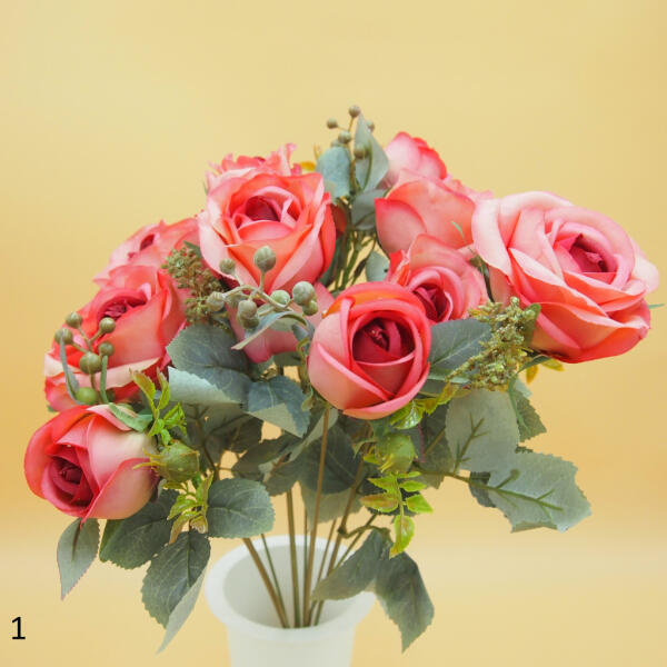 Selyem rózsacsokor 8 nyílott és 4 bimbósabb virággal (kb. 7cm és 4cm)