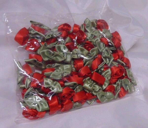 szatén rózsafej levélkével, piros(kb. 100 db) - 2 cm-15760