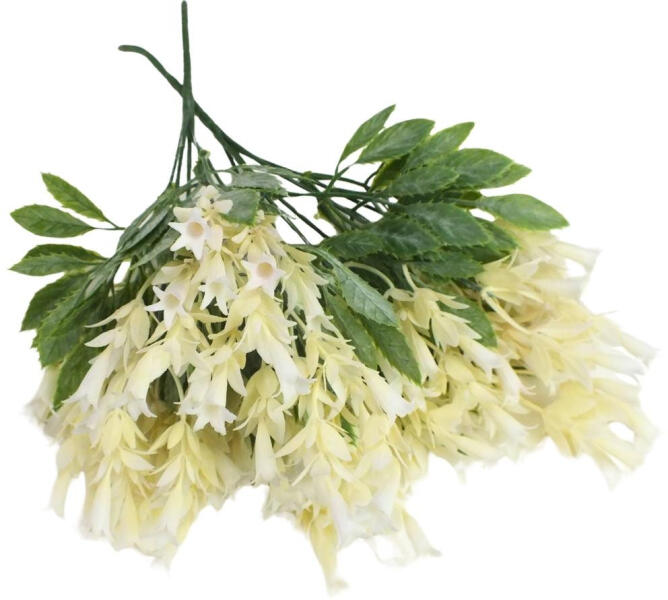 Selyemvirág, műnövény csokor. Kisebb-nagyobb dekorációk kiegészítéséhez ajánljuk, de önmagában is természetes hatású, a tavasz hangulatát idéző dekoráció.