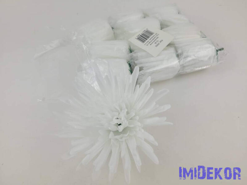 Tűszirmú krizantém selyemvirág fej D12cm - Fehér