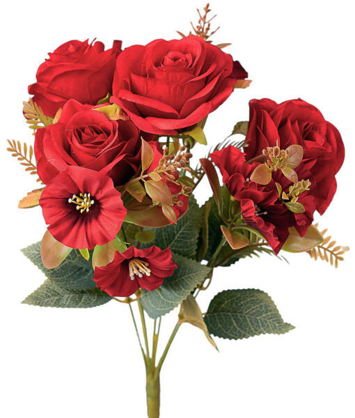 Valex Decor Rózsa selyemvirág csokor, 7 ágú, 43cm magas - Piros (LD022-05)