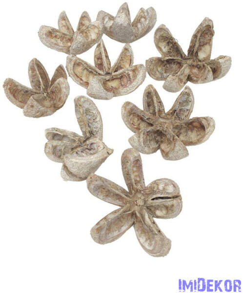 Egy csomag tartalma kb 8db/csomag, a képen látható mennyiség. Természetes dekoráció lévén a darabok változó méretűek, a csomagban kisebbek és nagyobbak is előfordulnak. A szárított termés festése nem mindig egyenletes.